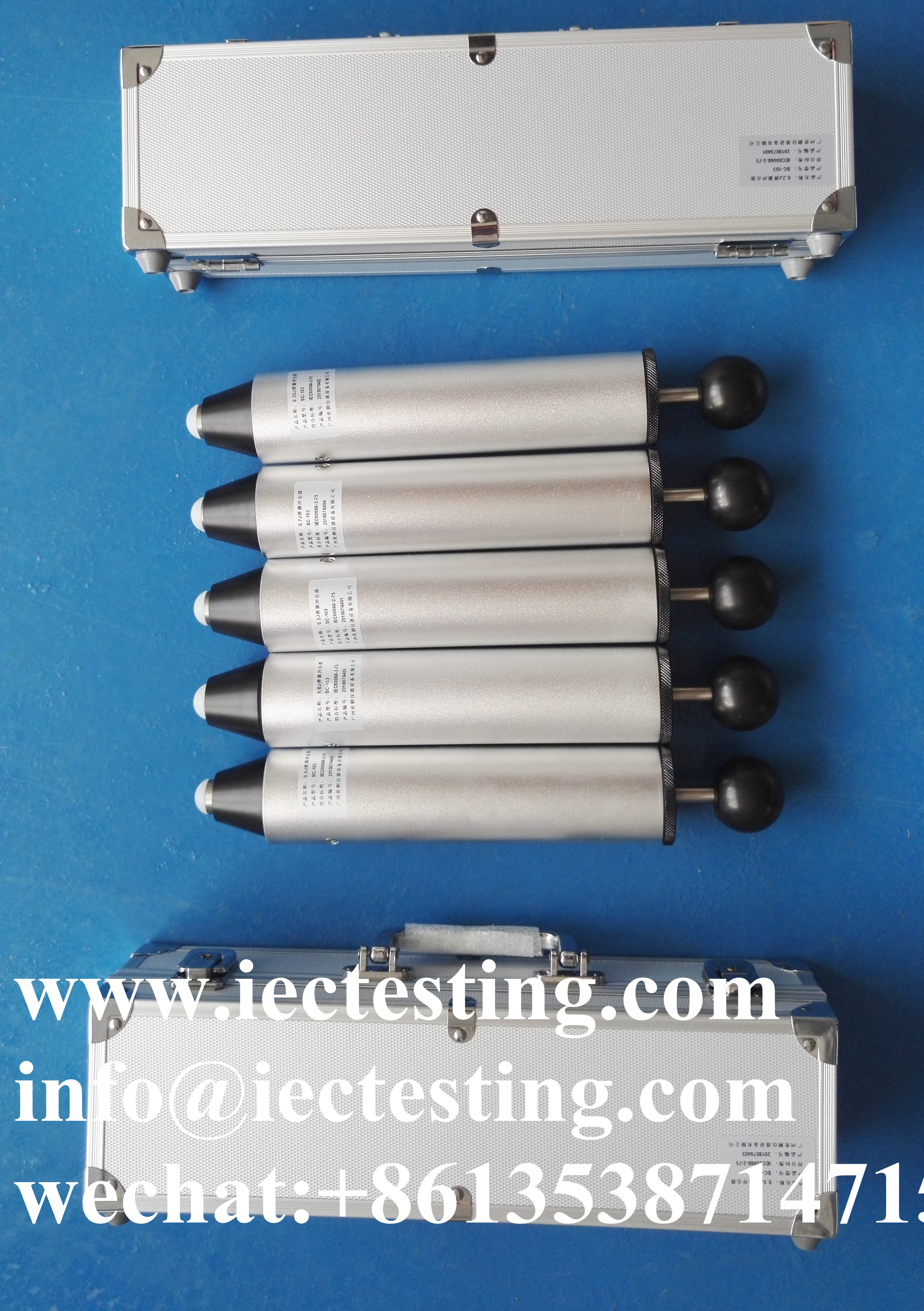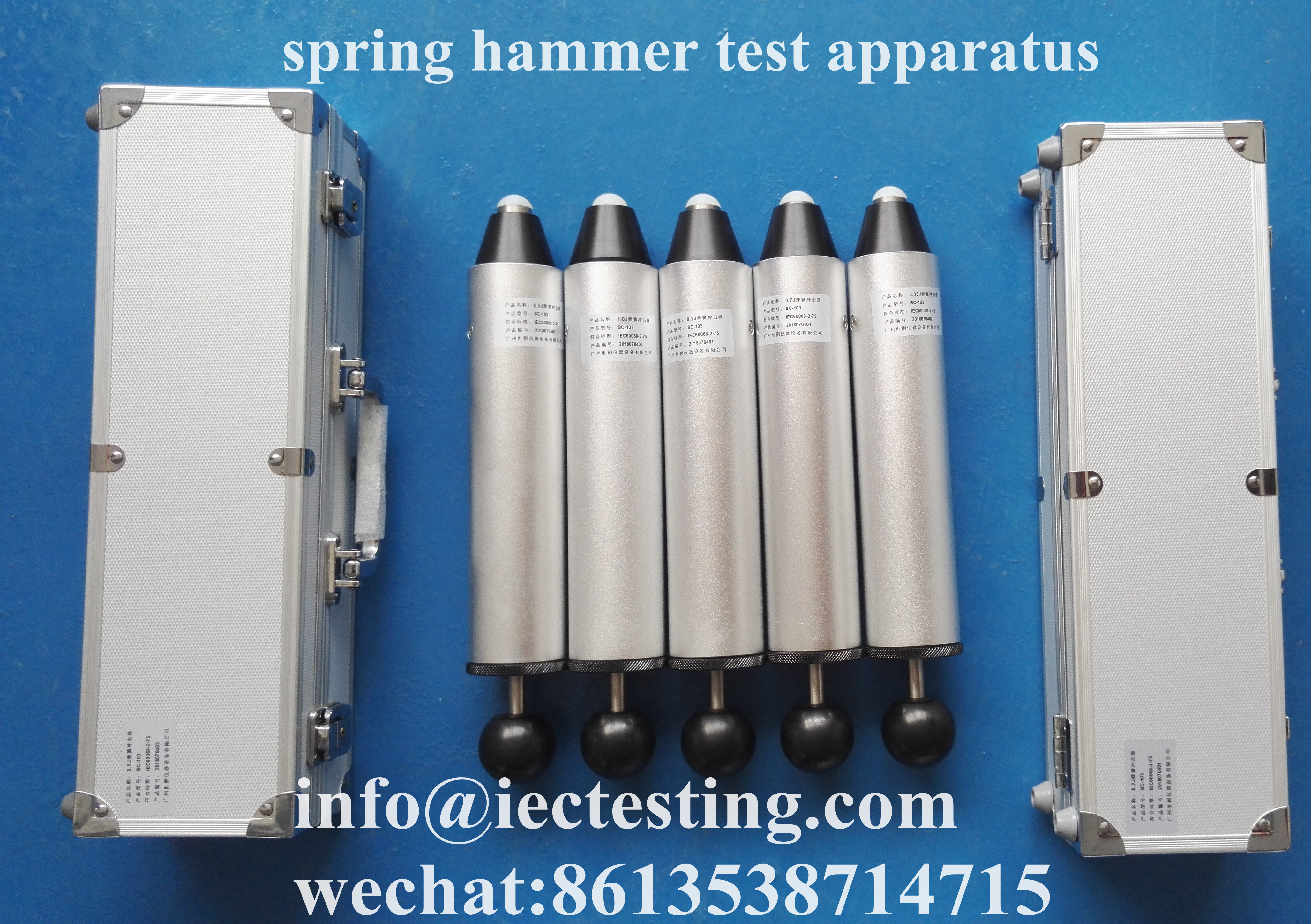 This spring impact test conforms to the standard requirements of IEC60068-2-63,IEC60068-2-75,IEC60335 and IEC60598. As required in the standards, it is used to test the mechanical integrity of product enclosures. After applying the impact with the hammer, the product is examined with accessibility probes to determine access to shock, energy, and injury hazards.